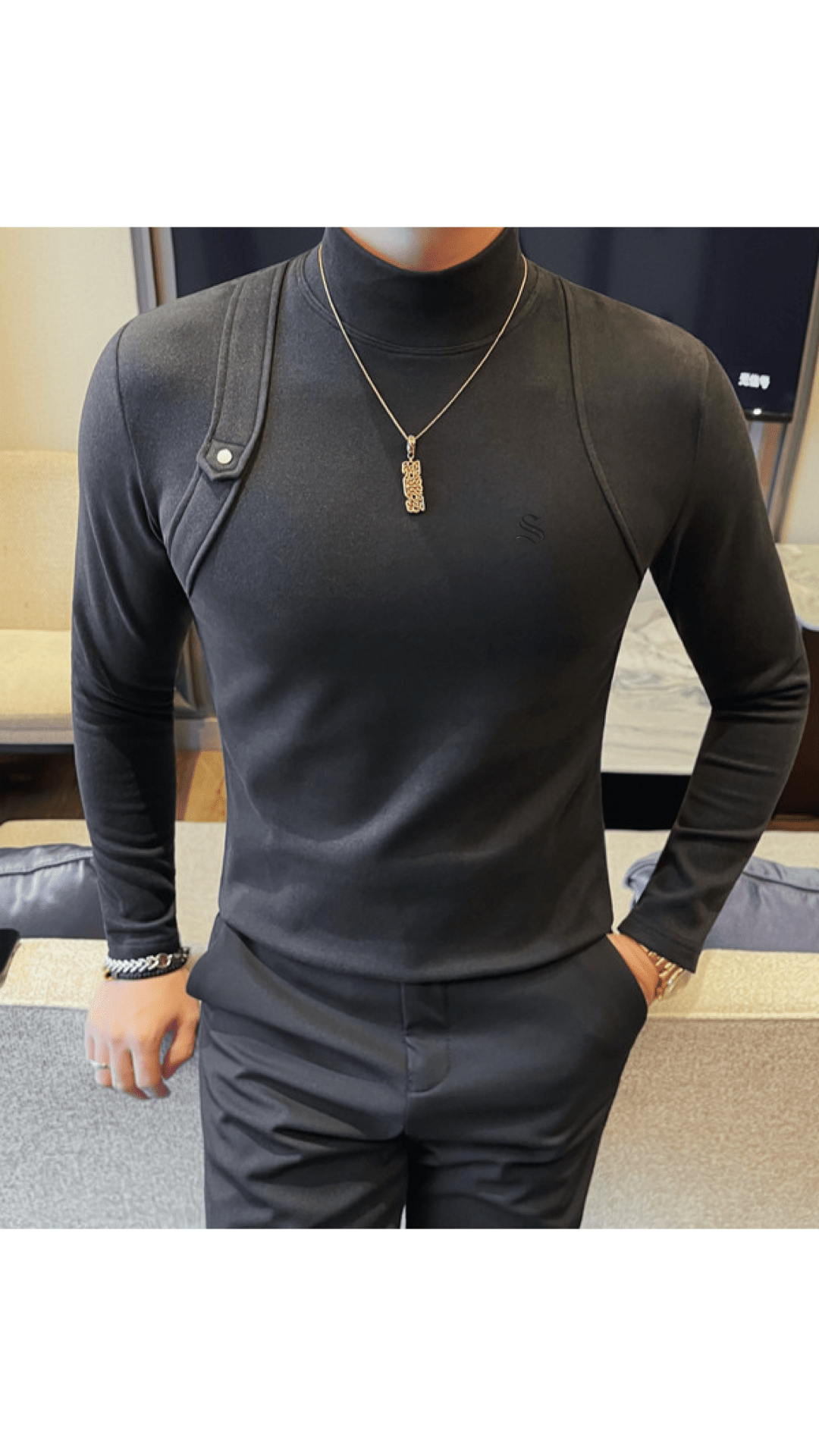 EWB 12 - High Neck Long Sleeve Shirt for Men - Sarman Fashion - Wholesale Clothing Fashion Brand for Men from Canada